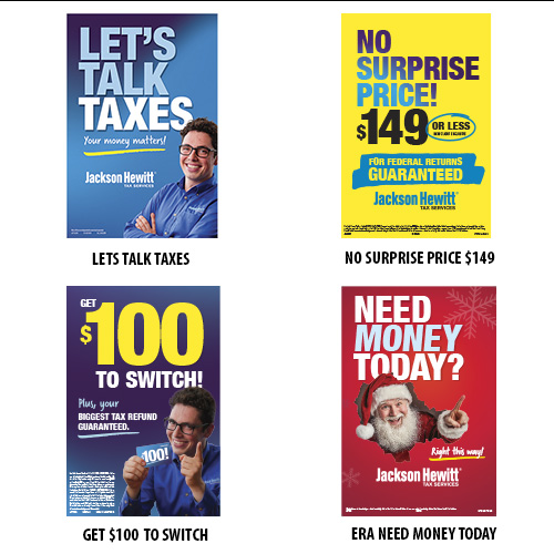 OTHER ARTWORKIf the Jackson Hewitt artwork you need is not listed in the dropdown menu, select OTHER and fill in your request in the Special Instructions field. EDITABLE CONTENT For inserts that require a phone number, price, or other information, put all applicable information in the Special Instructions box. Editable areas are shown in magenta.